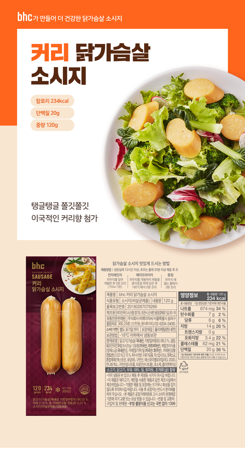 bhc 커리 닭가슴살 소시지 x 10개